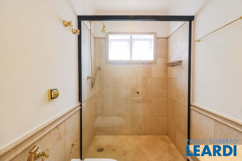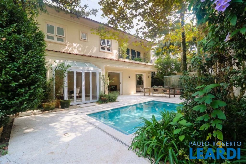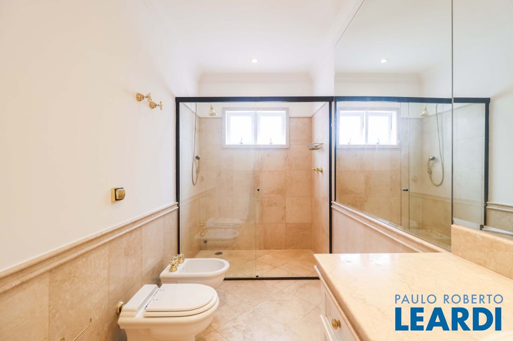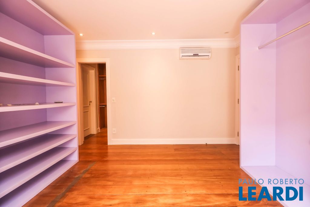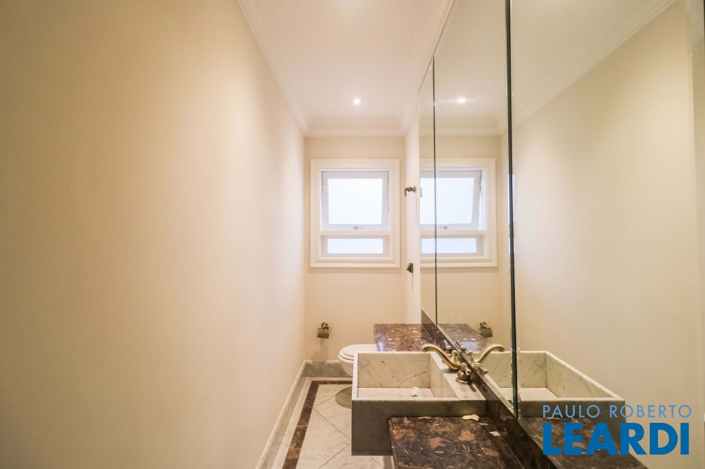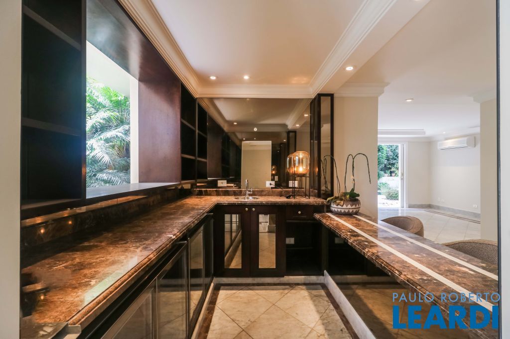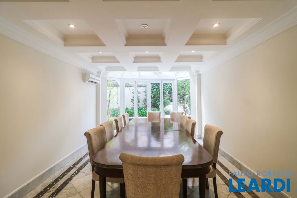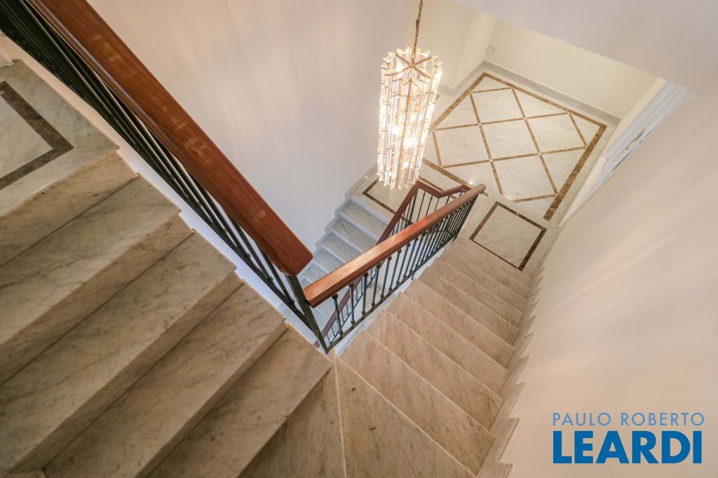 Acabamentos nobres, classe e sofisticação numa rua calma e arborizada. Ar condicionado em todos os ambientes. Portas blindadas. 578m² terreno 722m² área construída Hall de entrada com pé direito duplo em mármore Amplos livings 2 lavabos Escritório Copa Cozinha 4 suítes sendo 1 master, todas com marcenaria impecável Family room Academia Piscina Área gourmet Sauna em vidro Ampla área de serviço 2 dependências para funcionários 1 banheiro para motorista Garagem para 8 carros