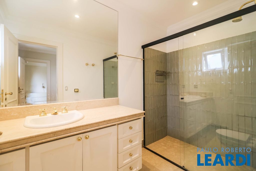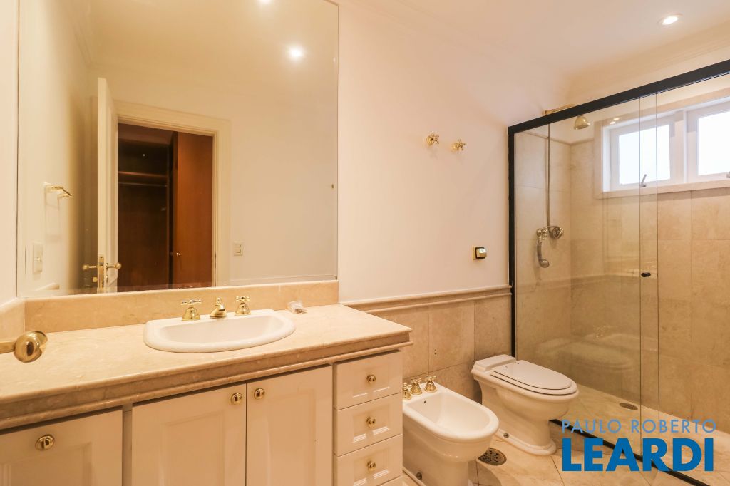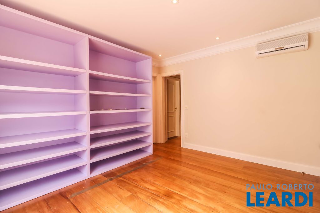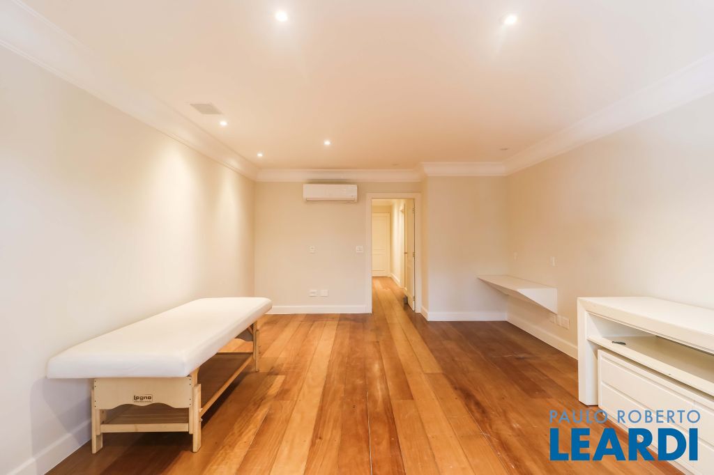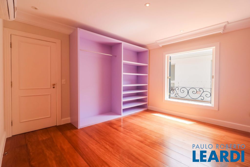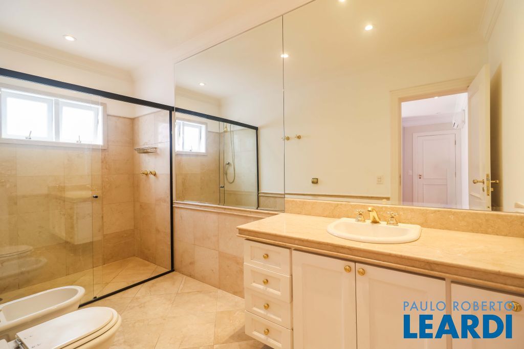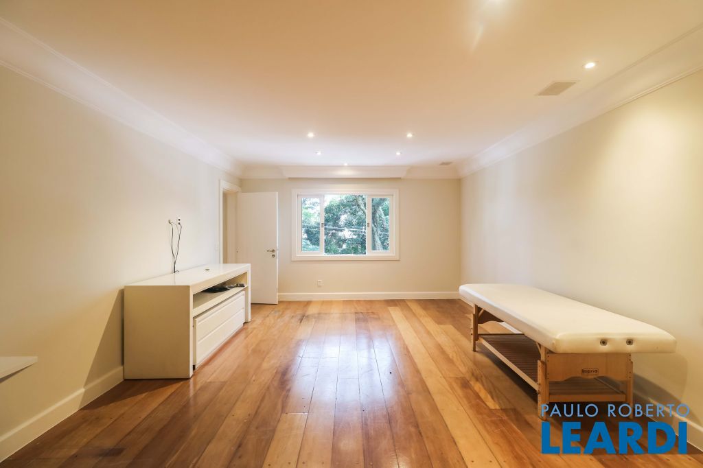 Acabamentos nobres, classe e sofisticação numa rua calma e arborizada. Ar condicionado em todos os ambientes. Portas blindadas. 578m² terreno 722m² área construída Hall de entrada com pé direito duplo em mármore Amplos livings 2 lavabos Escritório Copa Cozinha 4 suítes sendo 1 master, todas com marcenaria impecável Family room Academia Piscina Área gourmet Sauna em vidro Ampla área de serviço 2 dependências para funcionários 1 banheiro para motorista Garagem para 8 carros