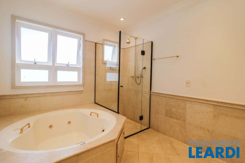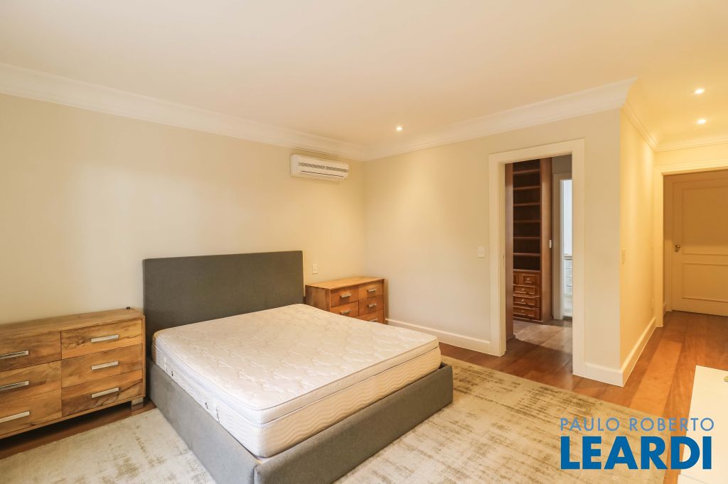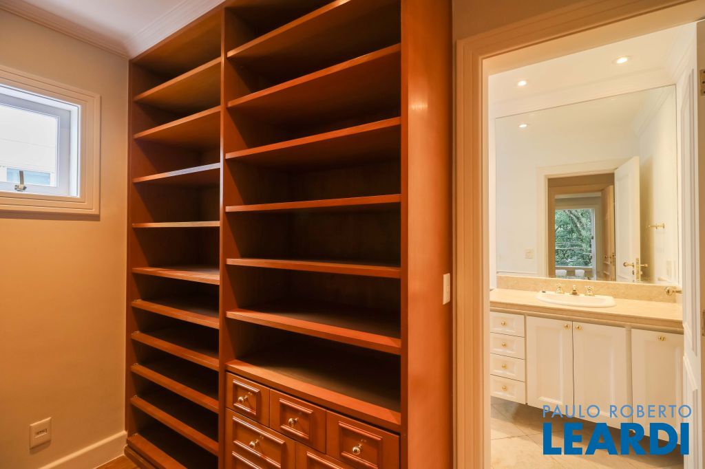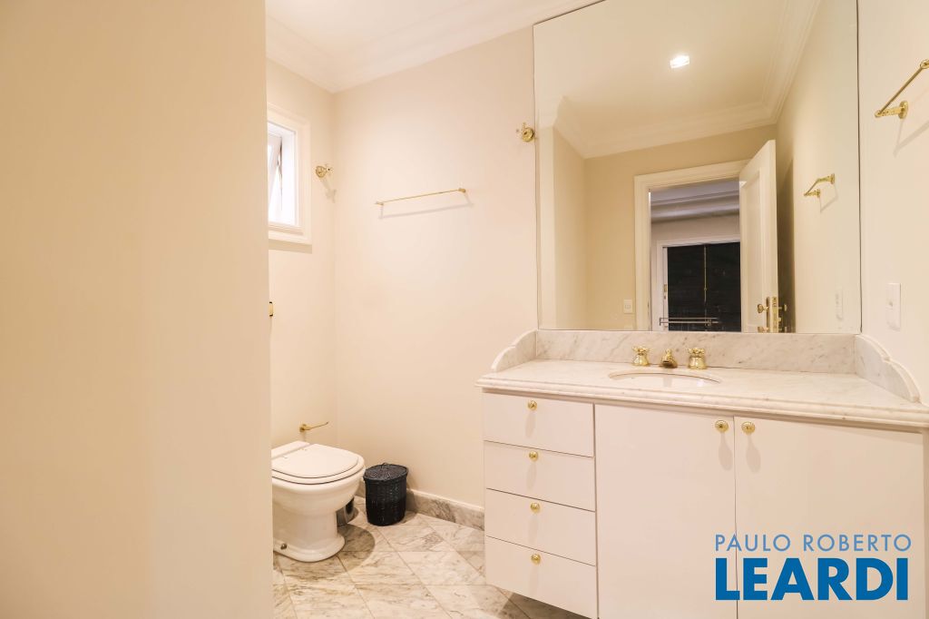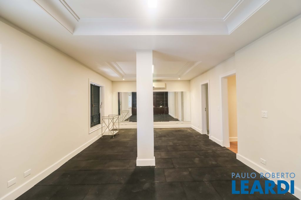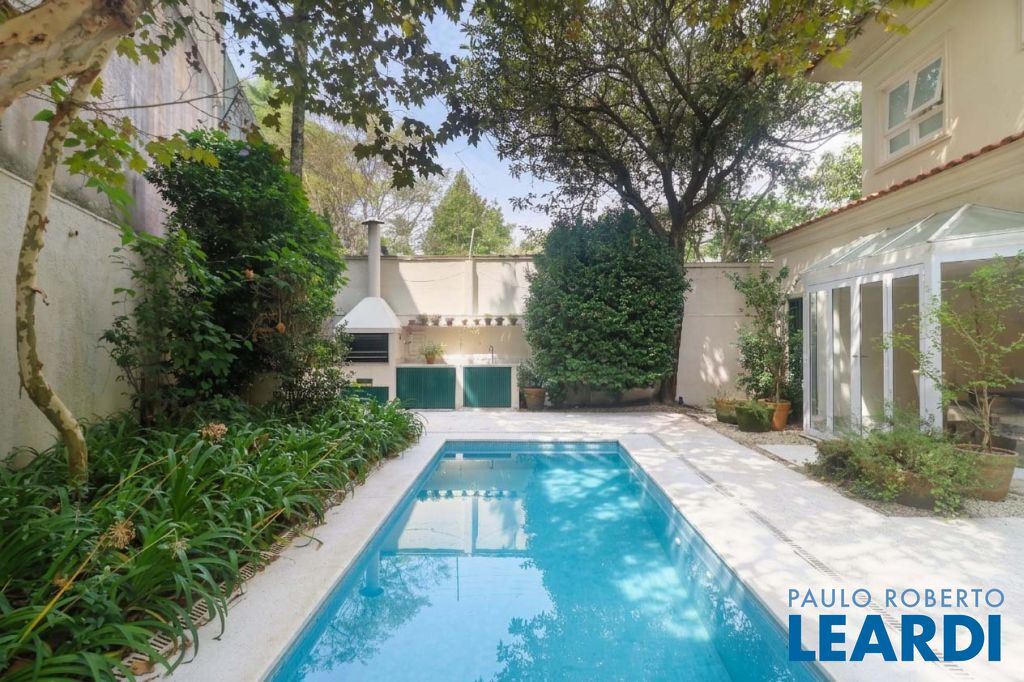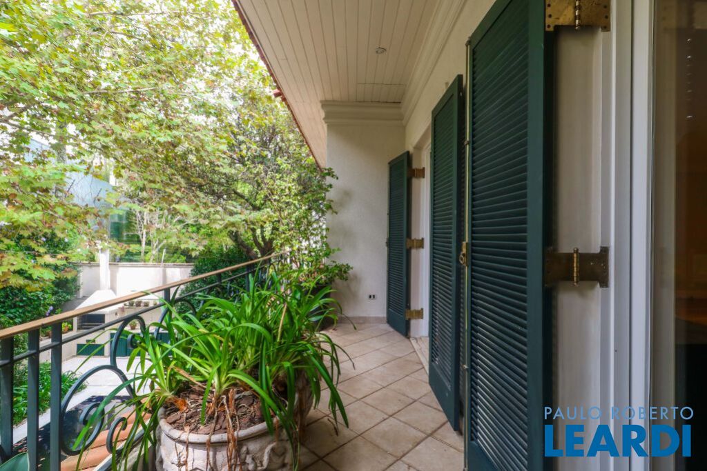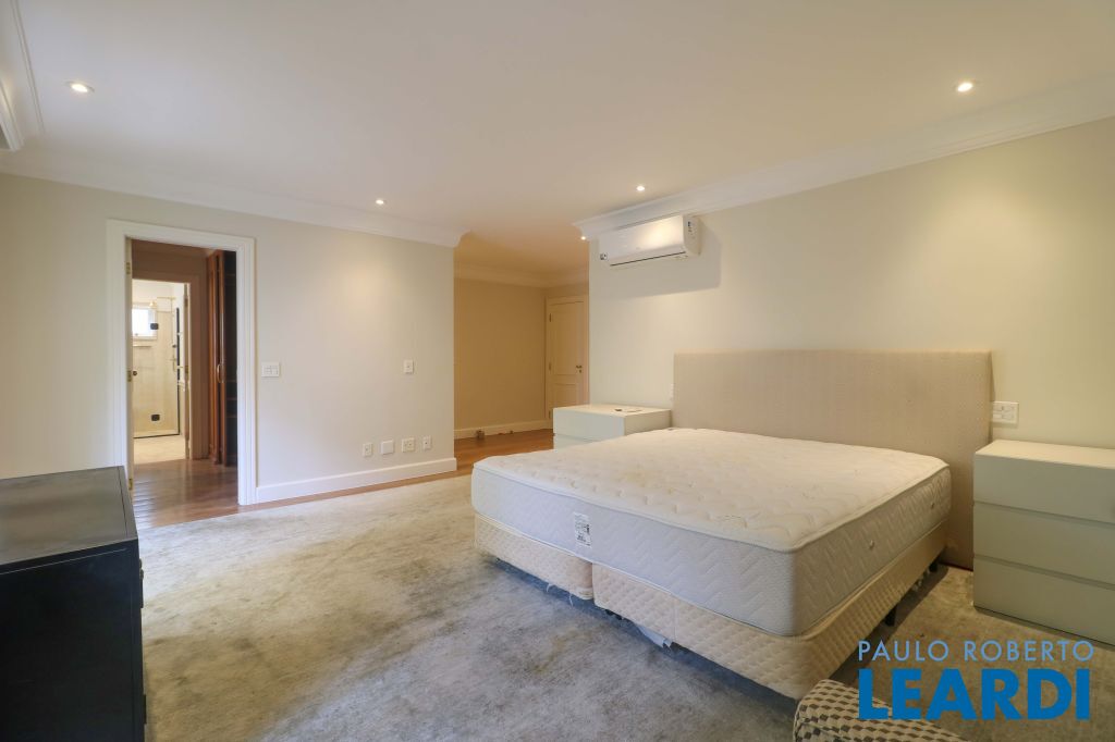 Acabamentos nobres, classe e sofisticação numa rua calma e arborizada. Ar condicionado em todos os ambientes. Portas blindadas. 578m² terreno 722m² área construída Hall de entrada com pé direito duplo em mármore Amplos livings 2 lavabos Escritório Copa Cozinha 4 suítes sendo 1 master, todas com marcenaria impecável Family room Academia Piscina Área gourmet Sauna em vidro Ampla área de serviço 2 dependências para funcionários 1 banheiro para motorista Garagem para 8 carros