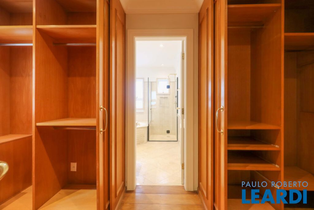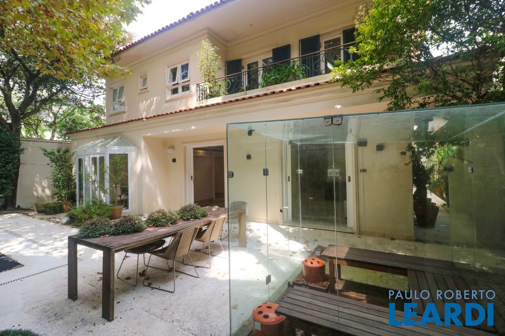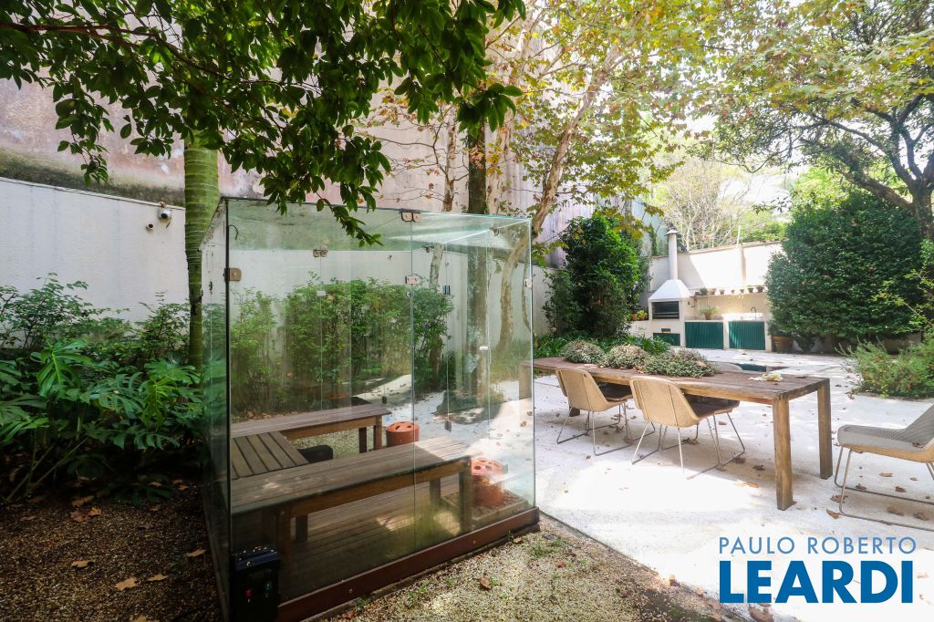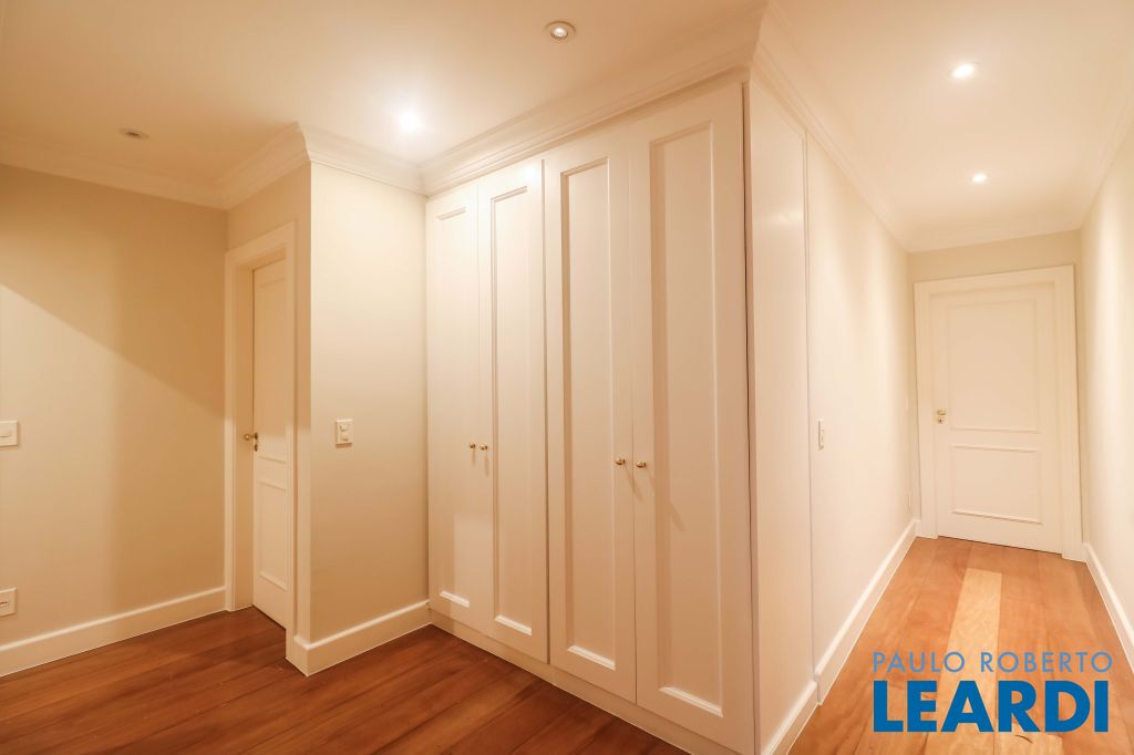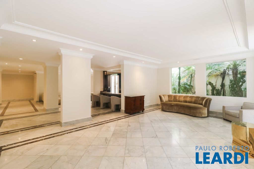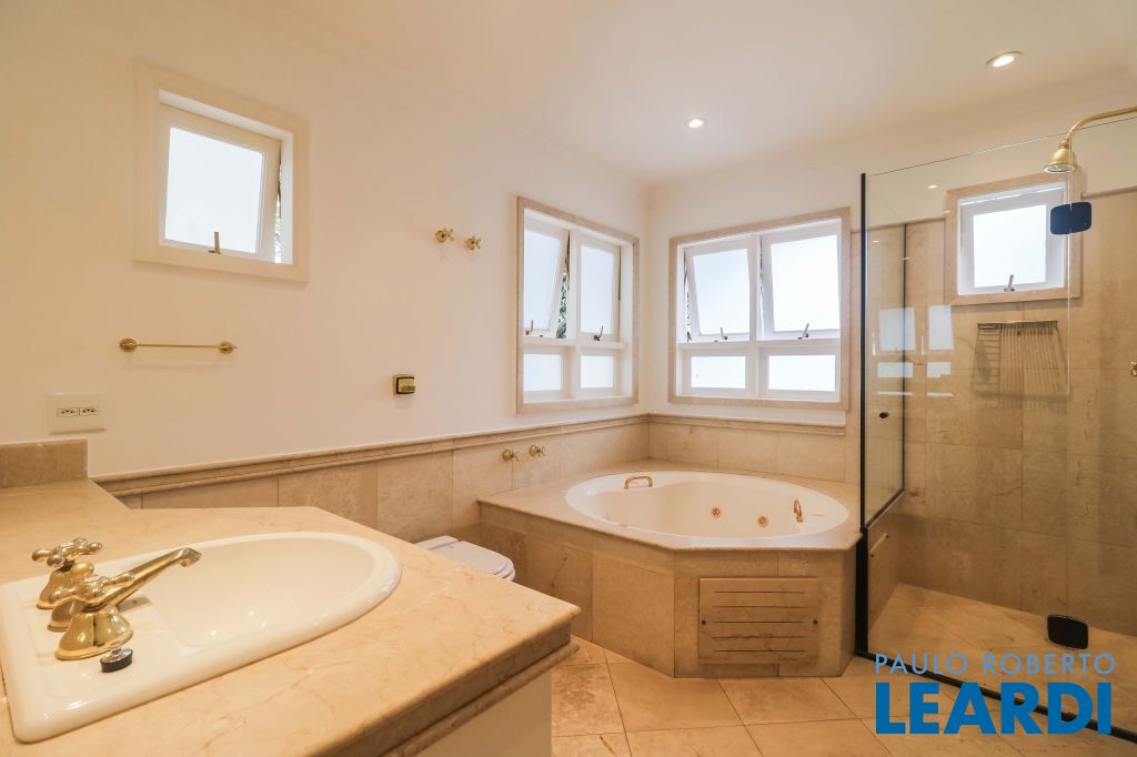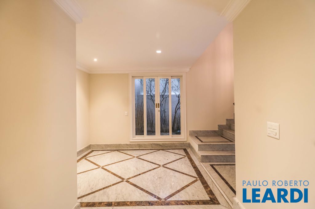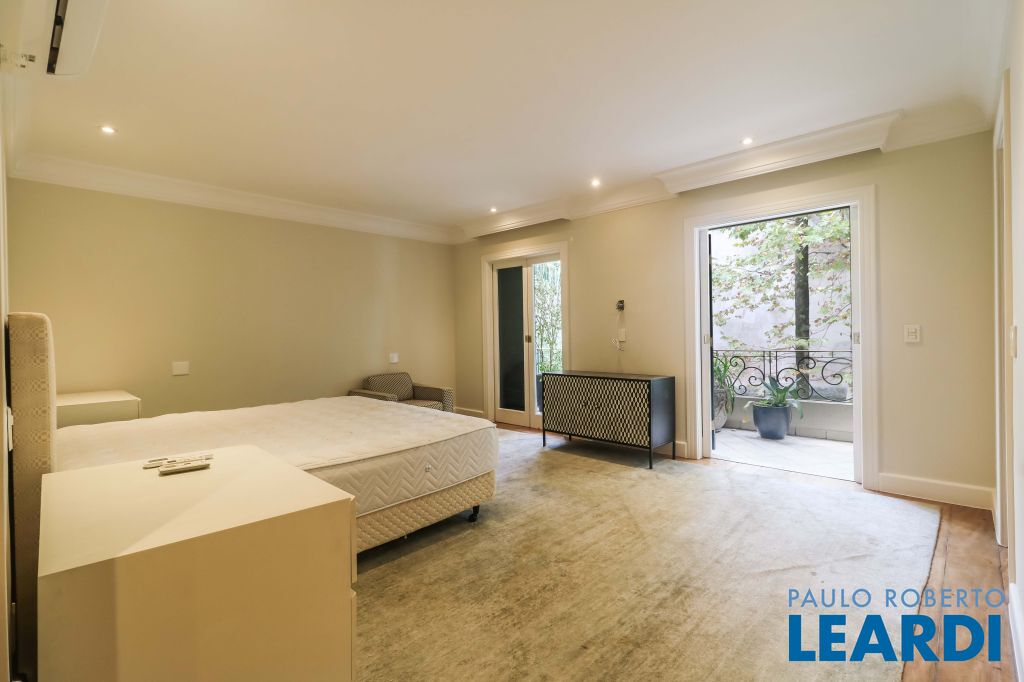 Acabamentos nobres, classe e sofisticação numa rua calma e arborizada. Ar condicionado em todos os ambientes. Portas blindadas. 578m² terreno 722m² área construída Hall de entrada com pé direito duplo em mármore Amplos livings 2 lavabos Escritório Copa Cozinha 4 suítes sendo 1 master, todas com marcenaria impecável Family room Academia Piscina Área gourmet Sauna em vidro Ampla área de serviço 2 dependências para funcionários 1 banheiro para motorista Garagem para 8 carros