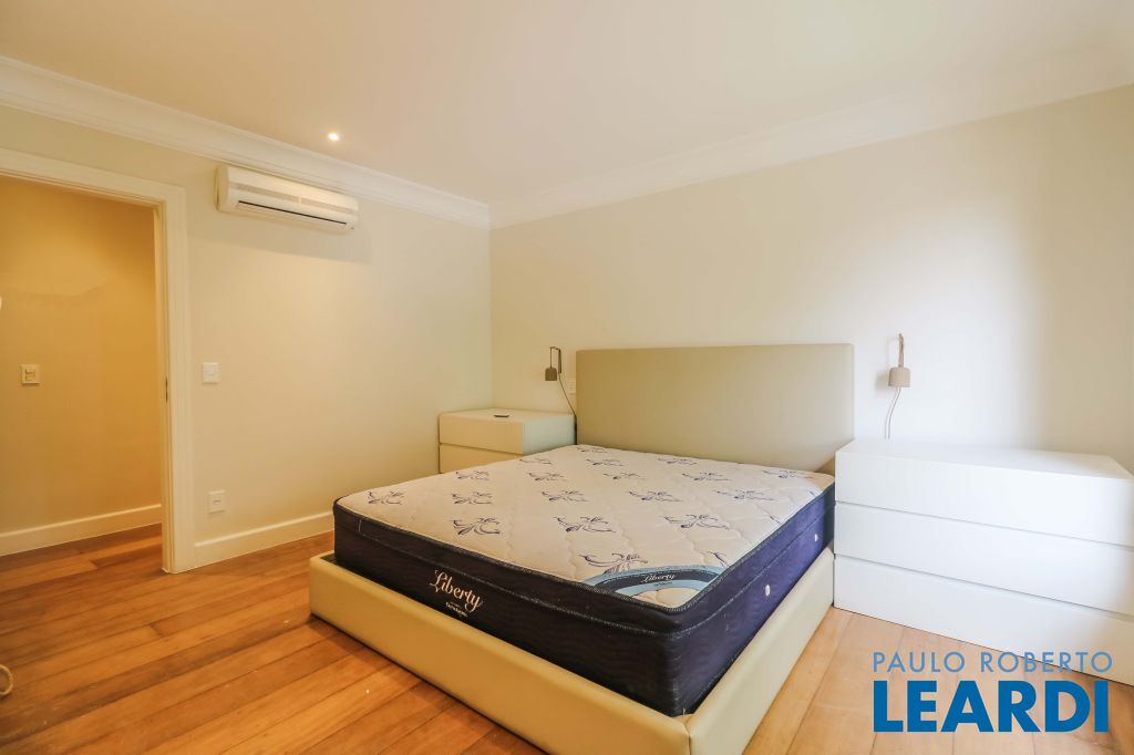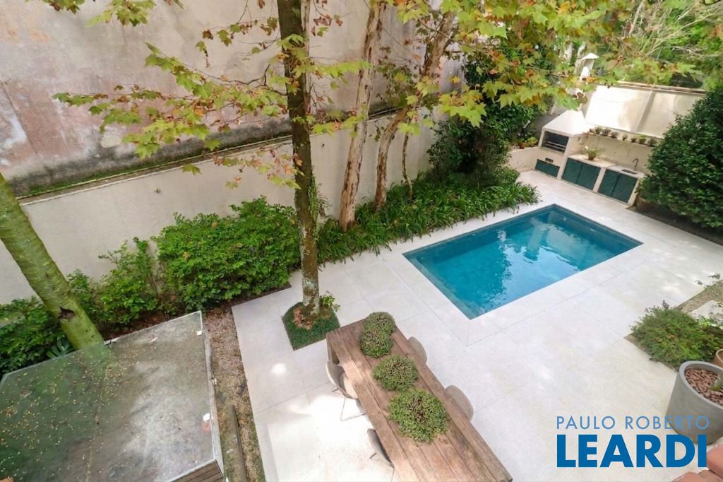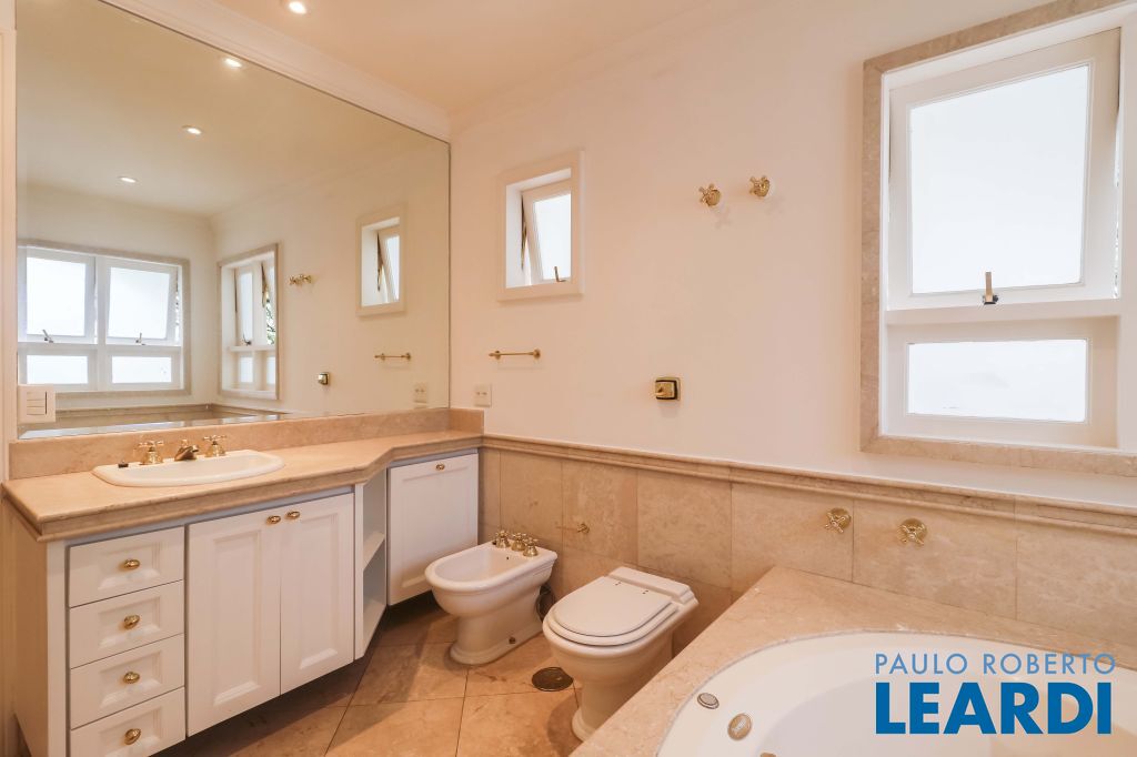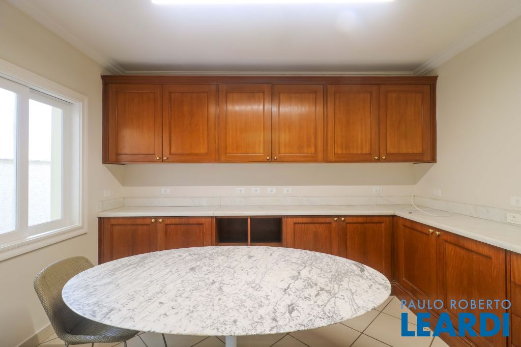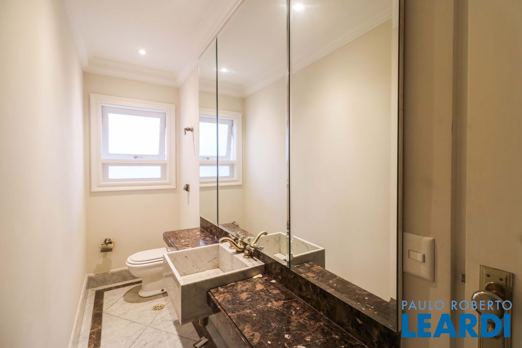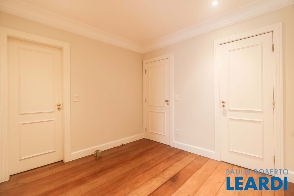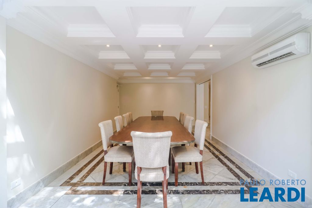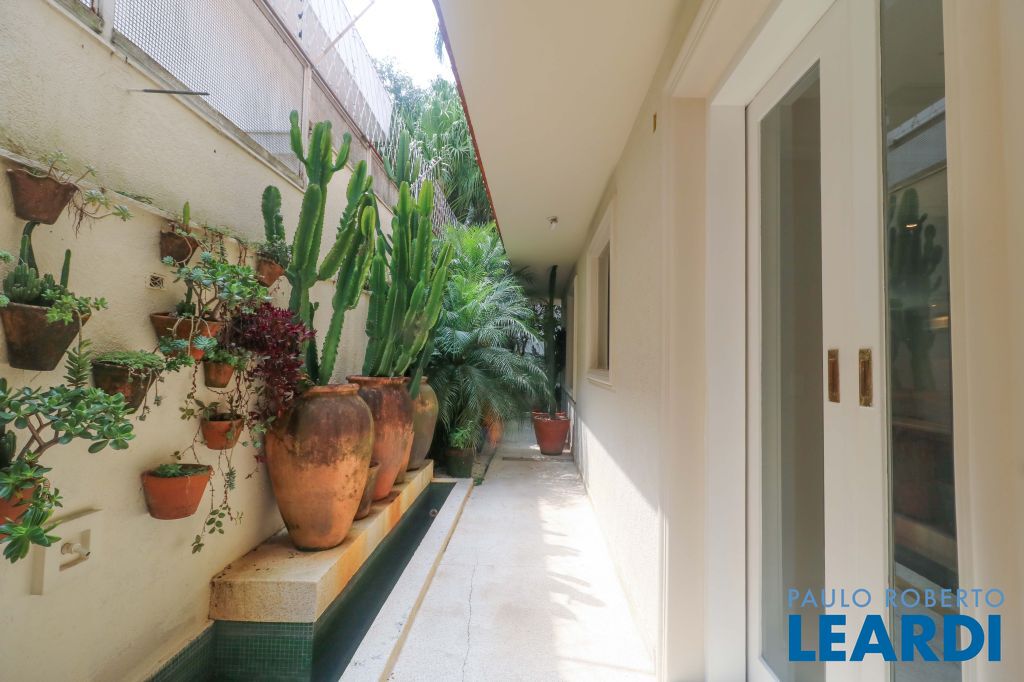 Acabamentos nobres, classe e sofisticação numa rua calma e arborizada. Ar condicionado em todos os ambientes. Portas blindadas. 578m² terreno 722m² área construída Hall de entrada com pé direito duplo em mármore Amplos livings 2 lavabos Escritório Copa Cozinha 4 suítes sendo 1 master, todas com marcenaria impecável Family room Academia Piscina Área gourmet Sauna em vidro Ampla área de serviço 2 dependências para funcionários 1 banheiro para motorista Garagem para 8 carros