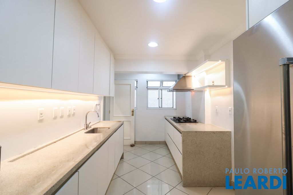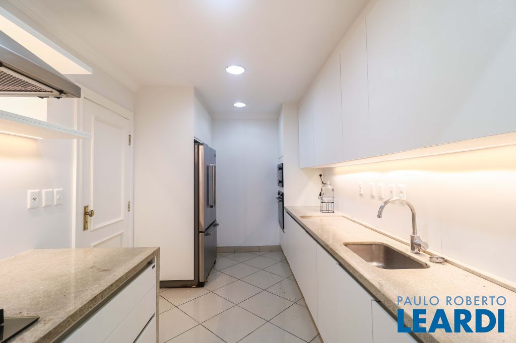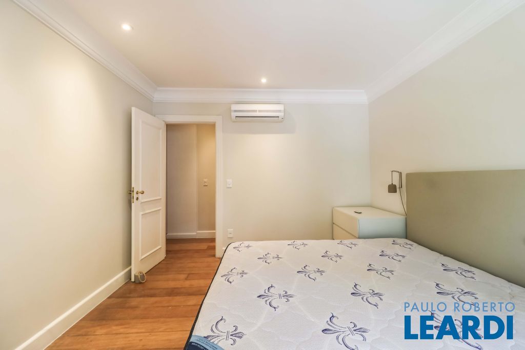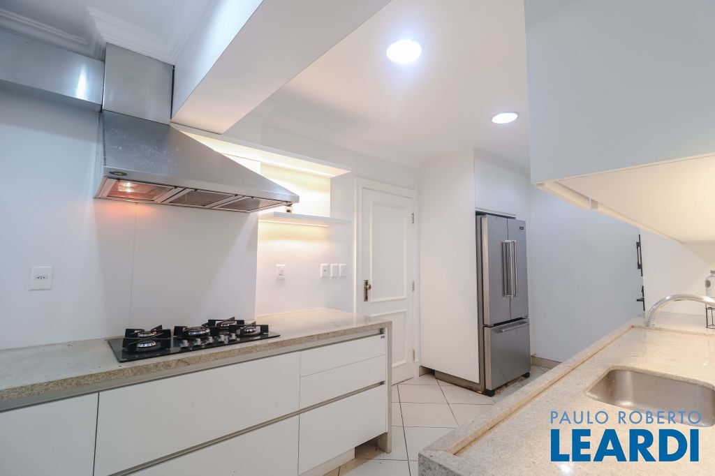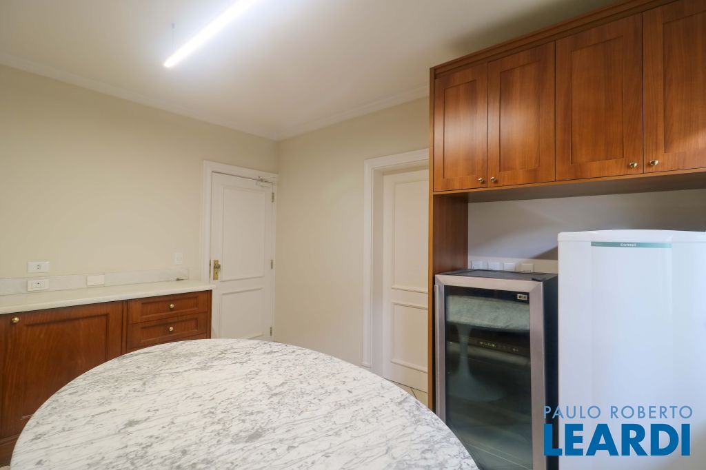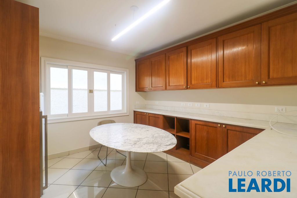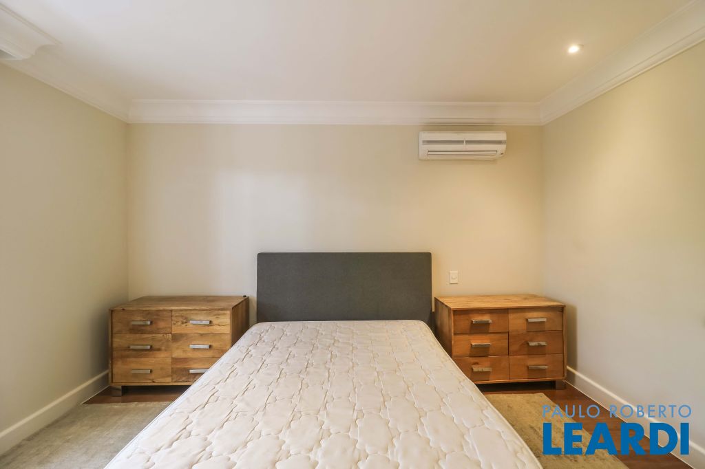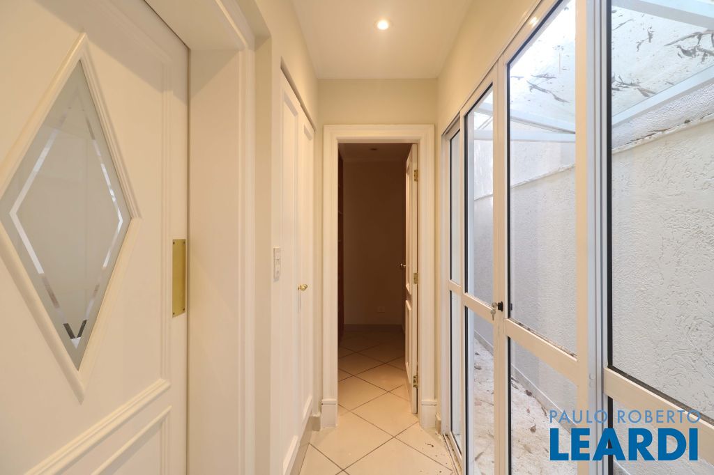 Acabamentos nobres, classe e sofisticação numa rua calma e arborizada. Ar condicionado em todos os ambientes. Portas blindadas. 578m² terreno 722m² área construída Hall de entrada com pé direito duplo em mármore Amplos livings 2 lavabos Escritório Copa Cozinha 4 suítes sendo 1 master, todas com marcenaria impecável Family room Academia Piscina Área gourmet Sauna em vidro Ampla área de serviço 2 dependências para funcionários 1 banheiro para motorista Garagem para 8 carros