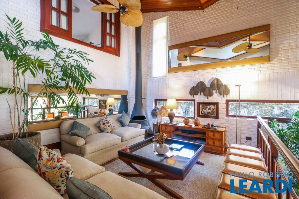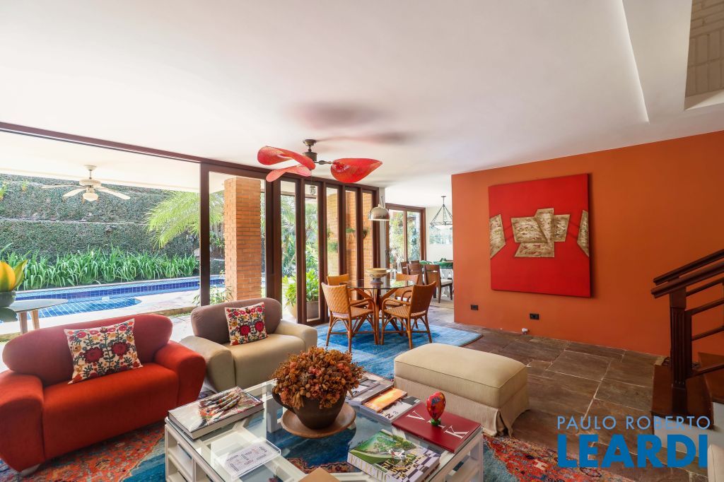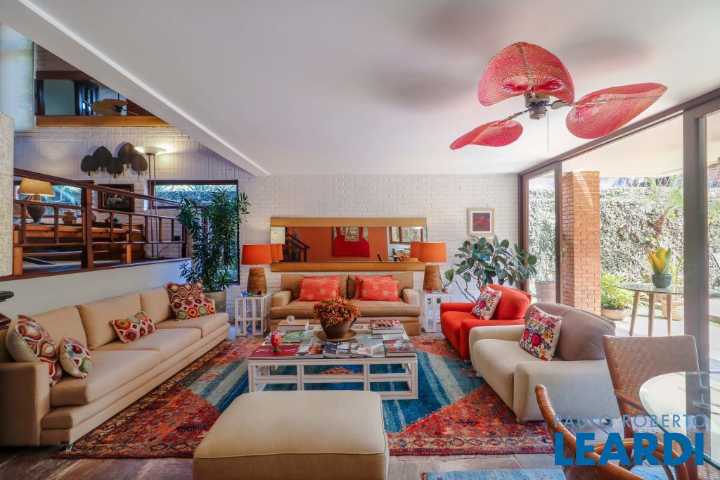 Projeto charmoso com living com pé direito duplo e mezanino. Ideal para quem busca um imóvel prático e em ótimo estado. 480m² terreno 344m² área construída Lavabo Living Mezanino com sala de estar com lareira Sala de jantar Escritório 3 suítes Piscina Churrasqueira Área de serviço 1 dormitório de empregada com sala 4 vagas