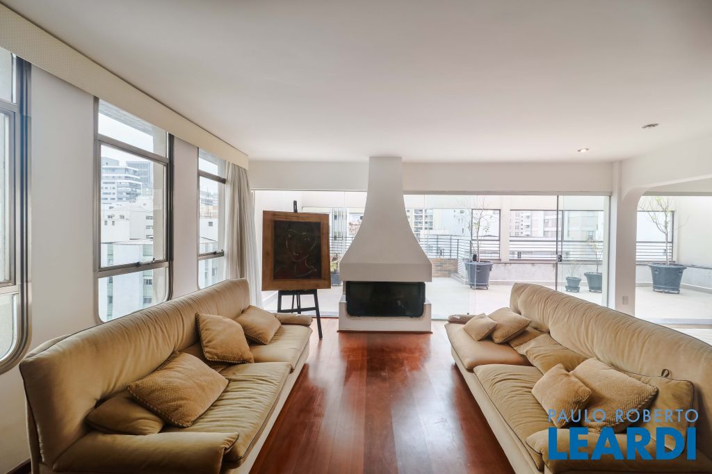Fácil acesso a opções variadas de comércio, cafés, parques, escolas. Ideal para quem busca um estilo de vida prático e agradável. PENTHOUSE com amplos espaços e um incrível terraço incorporado com o living e escritório que pode se transformar em home theater, academia ou o que você desejar. Pode ser facilmente transformado em 3 suítes. 473m² privativos Lavabo Sala de estar com lareira Sala de jantar Escritório com 80m² 3 quartos sendo 1 suíte master e 1 suíte americana (dois quartos com um banheiro no meio) Cozinha Amplo terraço incorporado ao living Salão de Festas 4 vagas de garagem