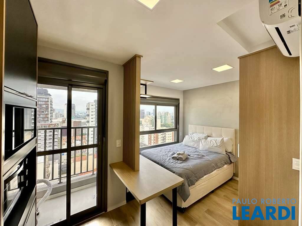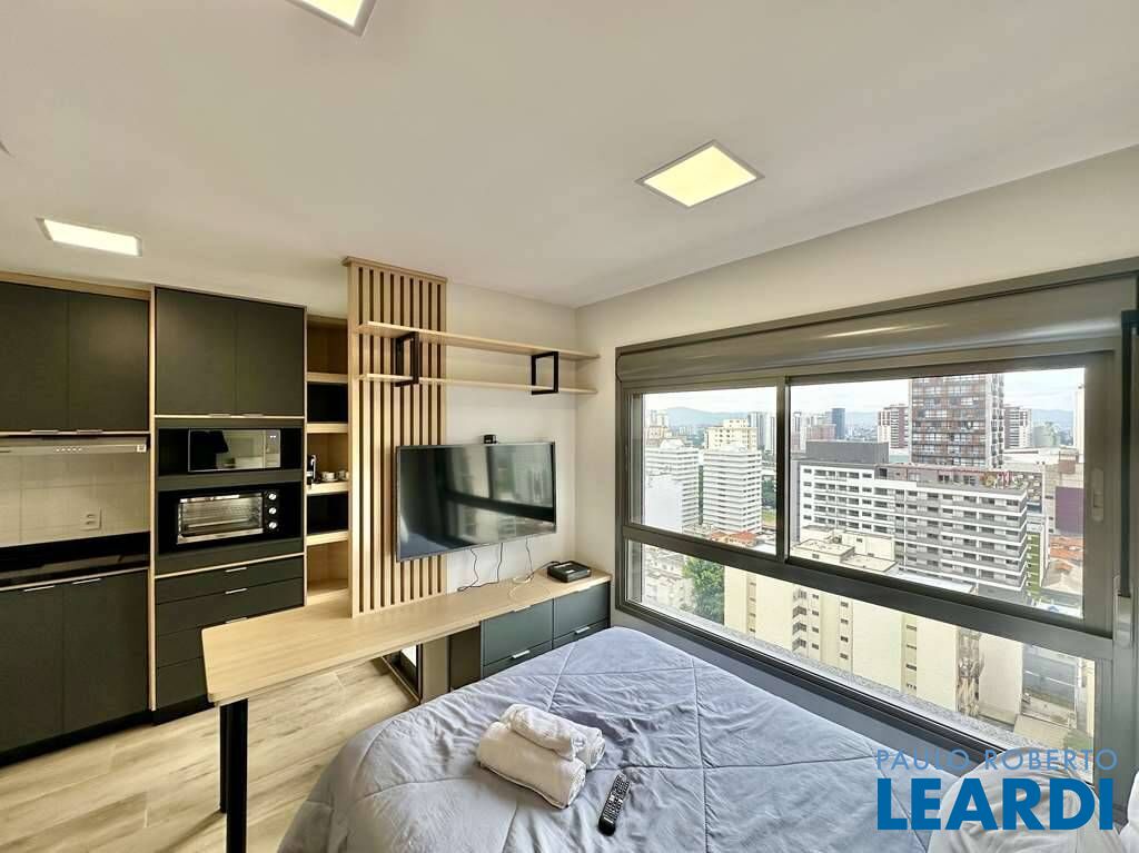 Studio 100% mobiliado e equipado (fotos atuais). Cozinha equipada com fogão de indução, depurador, forno elétrico, micro-ondas, geladeira. Varanda anexa à cozinha. Quarto com cama box, cabeceira c/ tomada USB, escrivaninha, guarda-roupas c/ 2 portas e TV LED 48". Vista ampla para o bairro da Pompéia. Banheiro com box de vidro, espelho e gabinete sob a pia. Ar-condicionado split. Fechadura eletrônica. Ótima localização, ao lado do Allianz Park. Alto potencial de rentabilidade com locação temporária. Aquecimento central de água no prédio: gás. Atende banheiro e cozinha. Não possui vaga de estacionamento (diversos estacionamentos nos arredores). Coraz Tucuna Ref. 324 Localizado no bairro de Perdizes, o Coraz studios está em uma posição estratégica. Situado no encontro da esquina da Rua Tucuna com a Rua Padre Chico, garante um entorno completo para seu dia a dia, com fácil acesso a diversos comércios, serviços e transportes da região. Nas proximidades do condomínio encontramos o Pão de Açúcar, a Drogaria São Paulo, o Bourbon Shopping, o Allianz Parque e muito mais. Além disso, está a 4 minutos de caminhada da futura estação de metrô SESC-Pompéia e conta com um fácil acesso à Avenida Pompéia e à Marginal Tietê. Um dos bairros que mais se valoriza em São Paulo, e é perfeito para quem busca mobilidade, qualidade de vida e infraestrutura completa que garante uma rotina prática ao morador. Por apresentar essas características, o bairro apresenta alta demanda por locação e venda