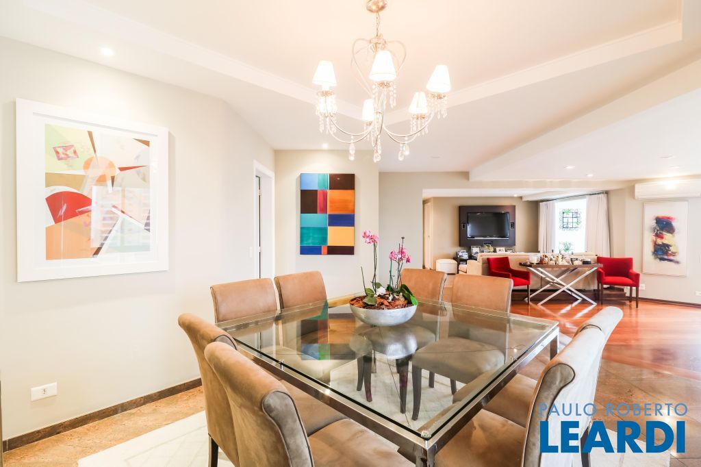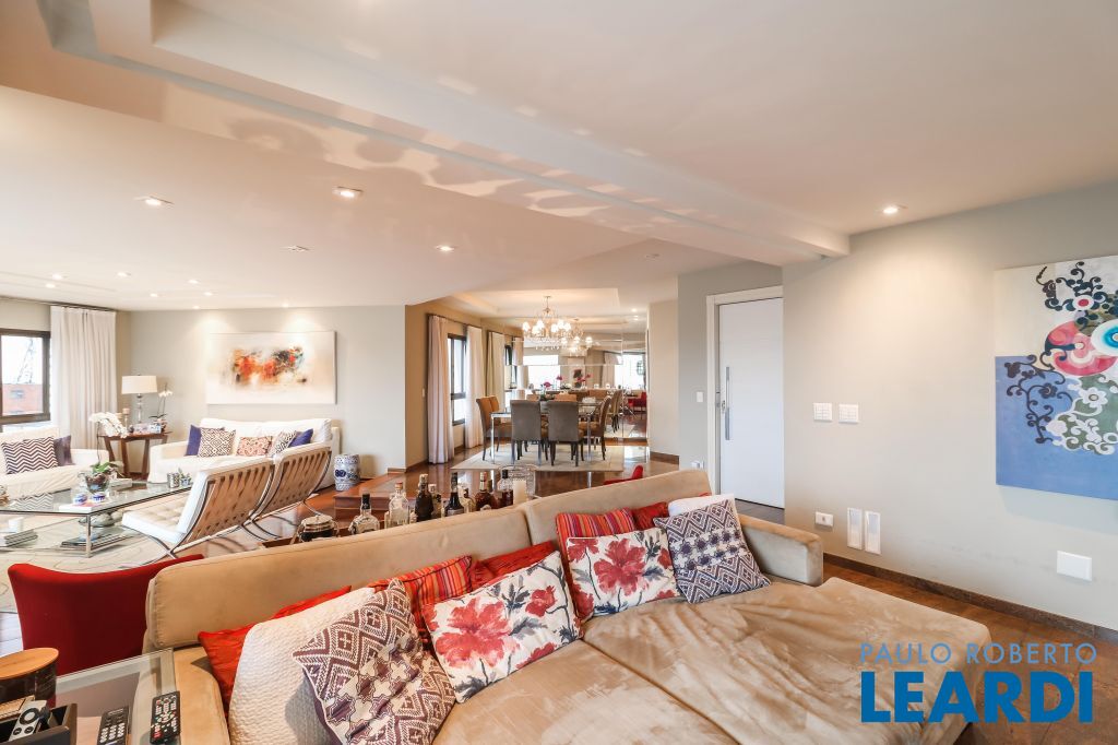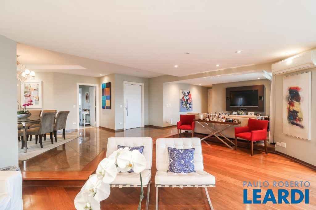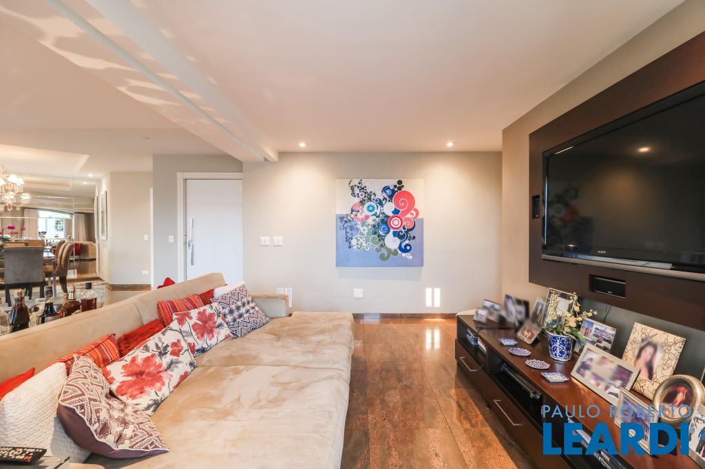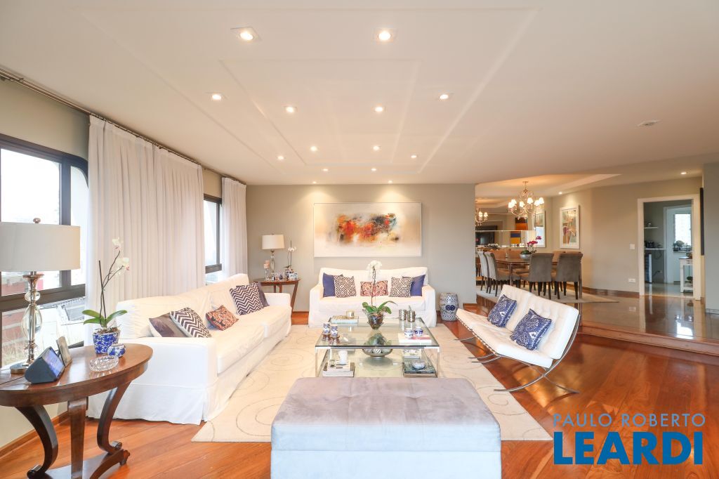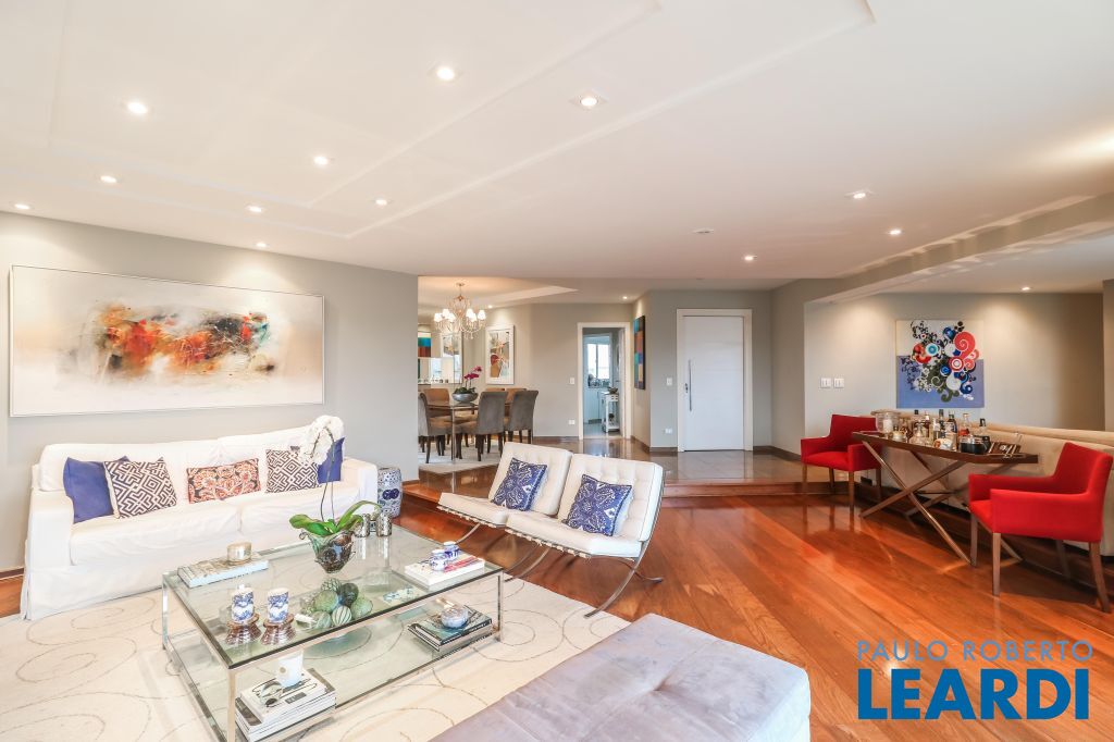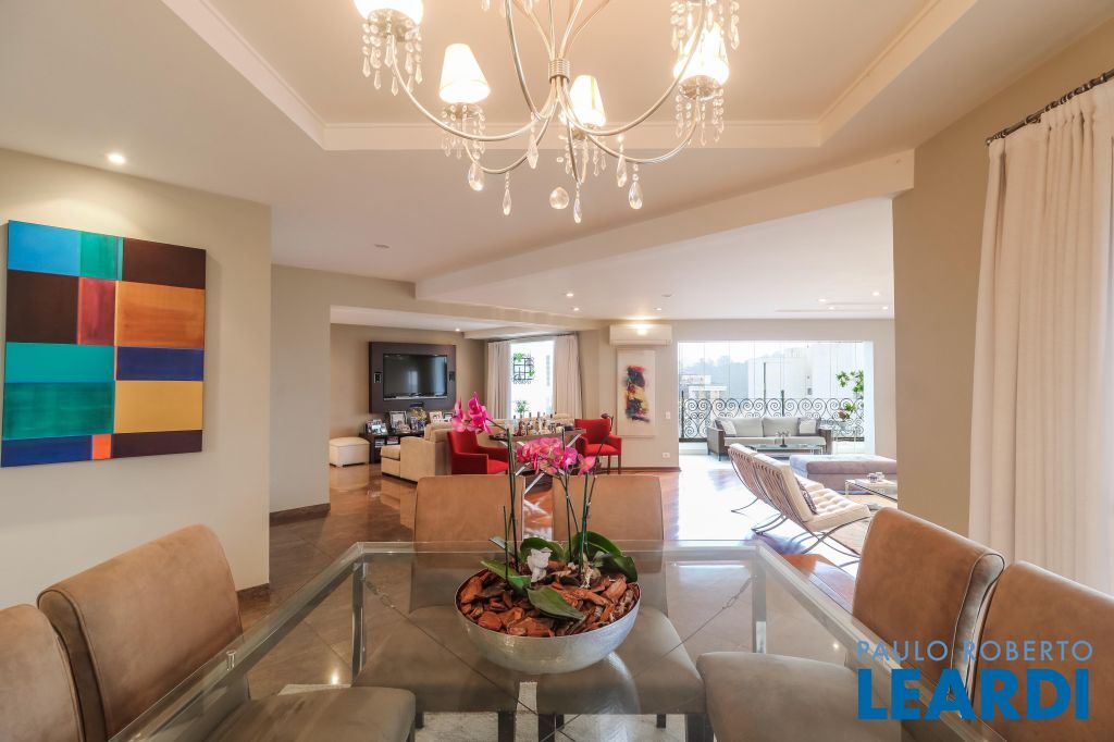 Apartamento amplo, com muita luz natural, em rua plana e arborizada. 300m² - área privativa Lavabo Varanda integrada com Living integrado com varanda, sala de estar, home theater e sala de jantar Escritório 4 Suítes Copa Cozinha 3 Vagas